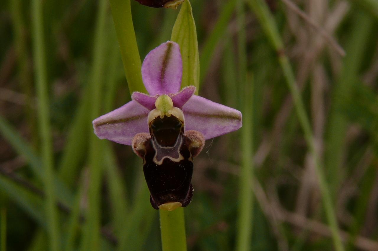 Les pétales latéraux et les sépales sont regroupés en casque nervuré de vert. vu le 17/05/2008